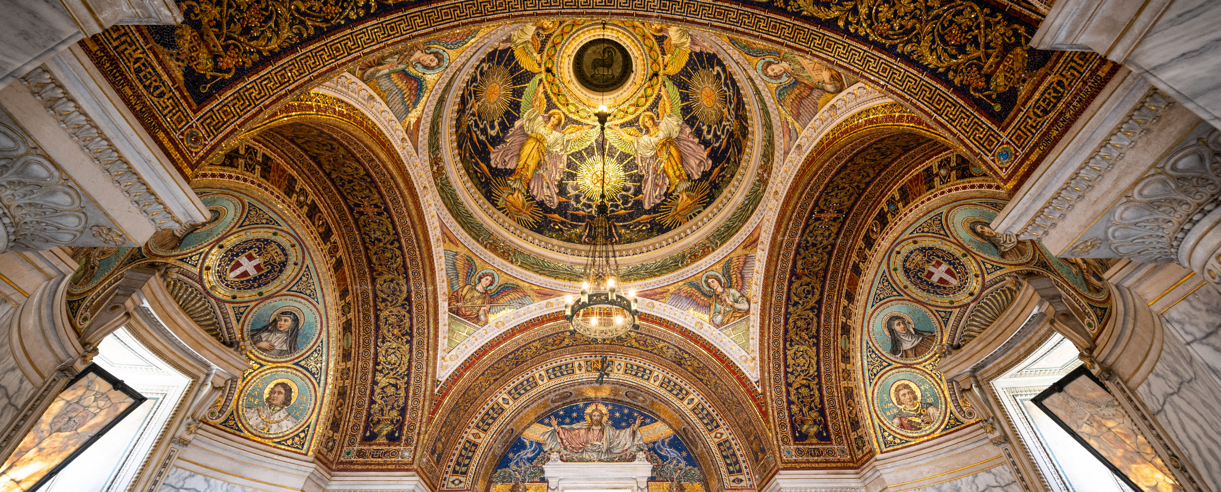 Nel basamento della colonna è ricavata una cappella decorata a mosaici, mentre al di sotto si sviluppa una cripta in cui un cippo in marmo nero segna il punto dell’attentato.